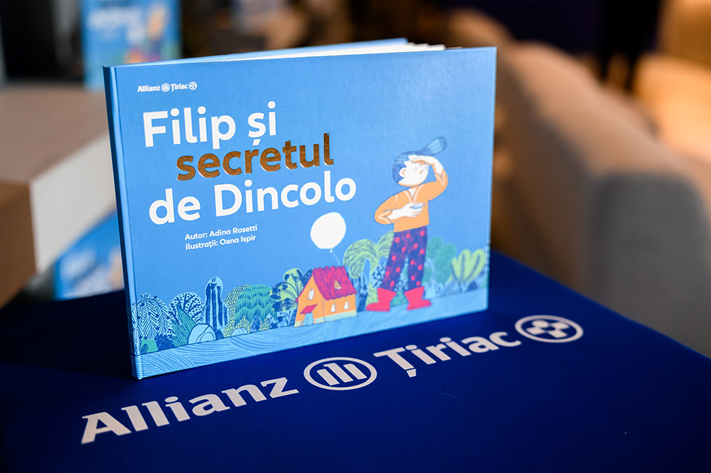 The book "Filip si secretul de dincolo," published by Allianz-Țiriac, explains in accessible language the concept of financial protection and the importance of insurance. Written by Adina Rosetti and illustrated by Oana Ispir, it follows the adventures of Filip and his family as they learn about courage, protection, and caring for loved ones.